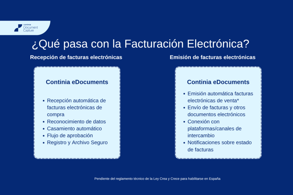 Con la entrada en vigor de la Ley Crea y Crece, la facturación electrónica será obligatoria para todas las empresas en España. Continia ofrece la solución eDocuments, que permite: