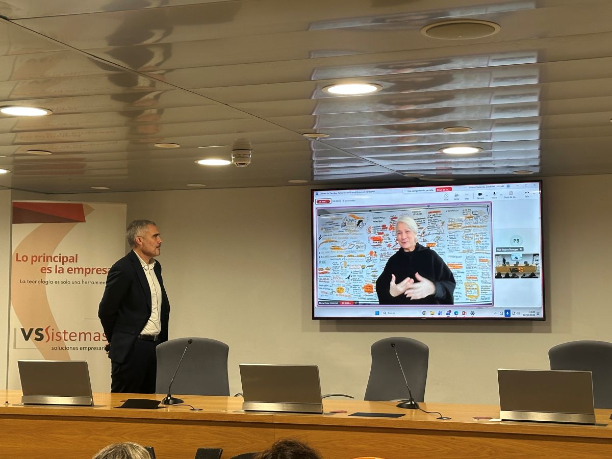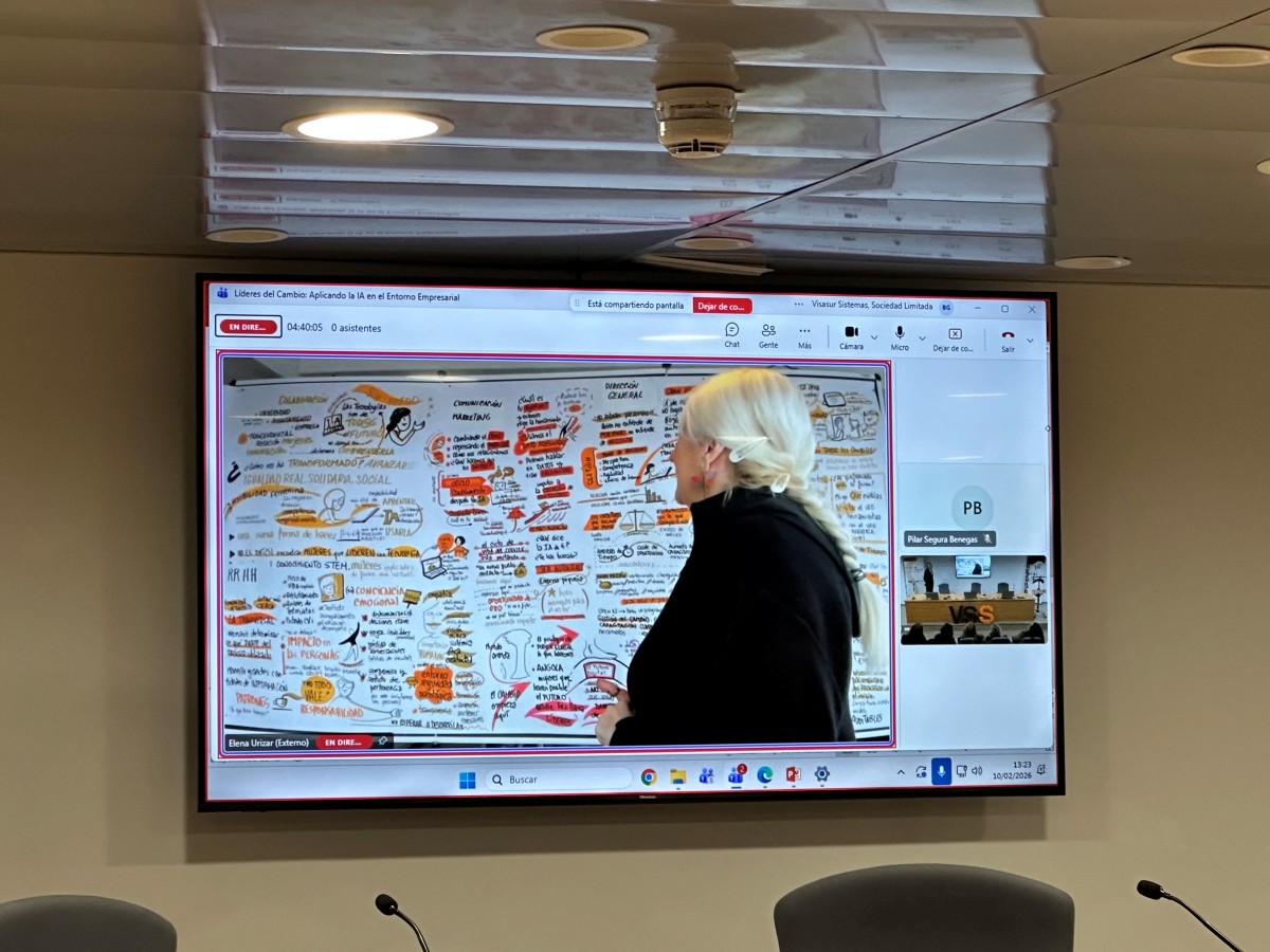 Uno de los momentos más singulares de Líderes del Cambio fue la participación de Elena Uriza, ilustradora especializada en pensamiento visual, quien colaboró de forma telemática debido a incidencias ferroviarias.